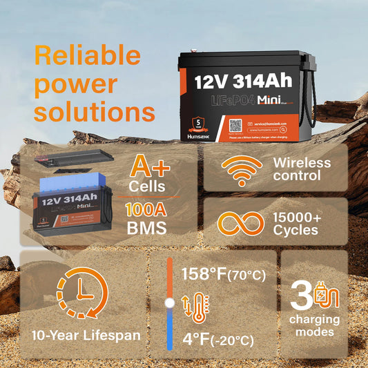Humsienk 12V 20Ah 100Ah 200Ah 314Ah LiFePO4 Battery Rechargeable Cells 15000 Cycle BMS For RV/ Vans/ Camping/ Home Storage/Solar